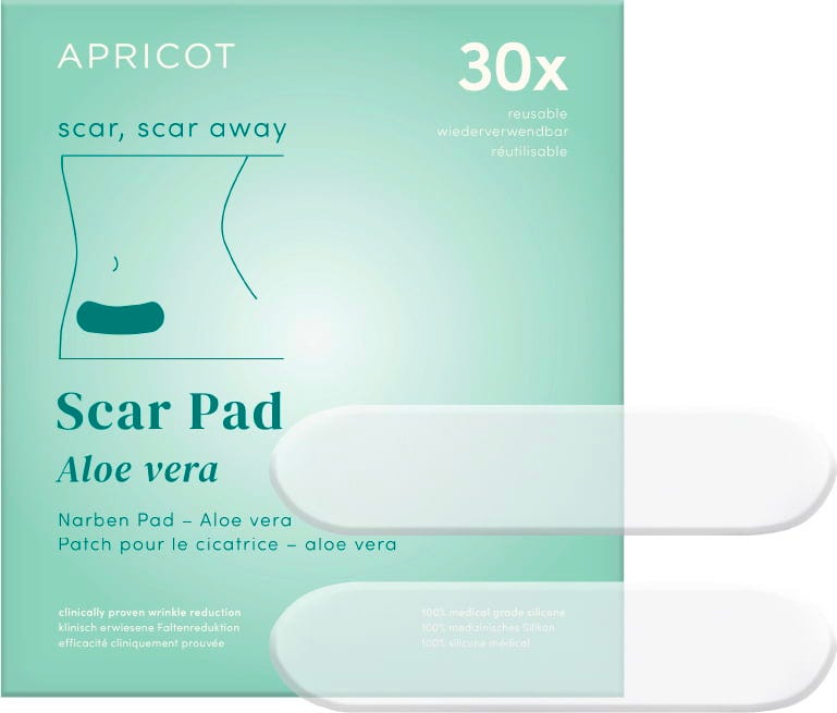 Die Aloe Vera Narben‑Pads von APRICOT eignen sich zur Anwendung auf alten und neuen Narben. Dank Aloe Vera wird die Narbe intensiv gepflegt. Die Pads bestehen aus medizinischem Silikon und sind bis zu 30x wiederverwendbar. Sie können auch an empfindlicher Haut oder als After-Sun-Pflege verwendet werden.