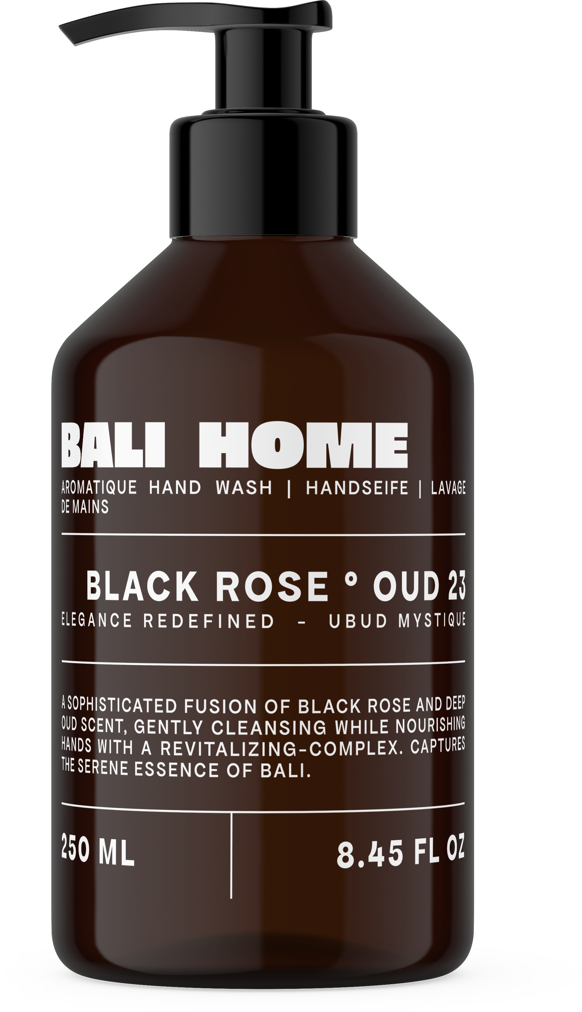 Eine verfeinerte Duftkomposition aus schwarzer Rose und tiefem Oud verwandelt das alltägliche Händewaschen in einen Moment stillen Luxus, inspiriert von den Zwielichtgärten und der Ruhe Balis. Die elegante Mischung entfaltet einen warmen, geheimnisvollen Duft. Mit einem revitalisierenden Pflegekomplex formuliert, reinigt die Seife sanft und pflegt deine Hände, sodass sie weich und glatt erscheinen.