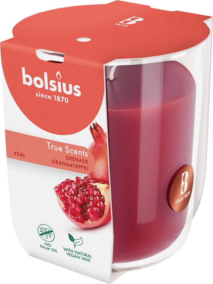 Die Bolsius True Scents Duftkerze im Glas sorgt bis zu 25 Stunden lang für eine optimale Duftverteilung in deinen Wohnräumen. Dank Freshplex™-Technologie hilft sie sogar beim Neutralisieren von Tabakrauch. Die Kerze besteht zum Teil aus pflanzlichem Wachs und ist frei von Palmöl.
