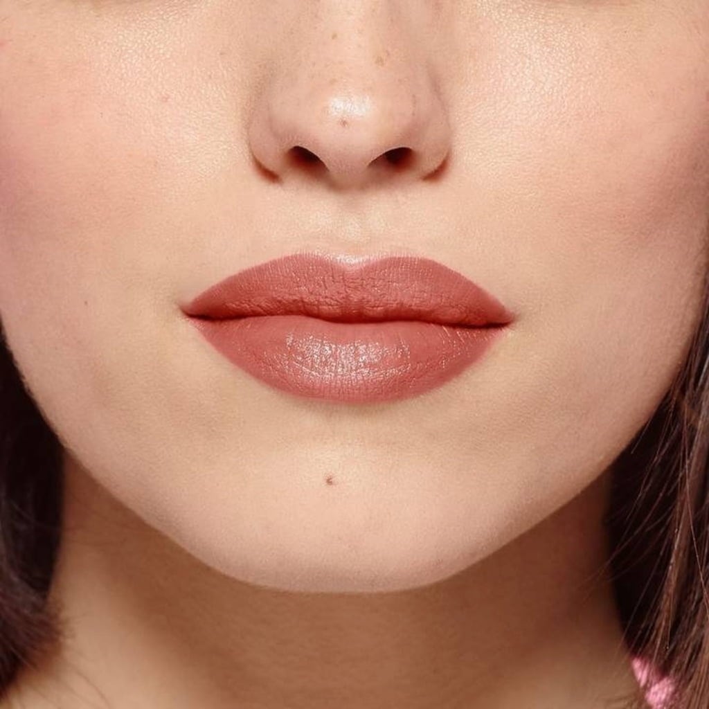 Anwendung: Den Lippenstift zuerst in der Mitte des Lippenherzes aufsetzen und von dort ausgehend zu den äußeren Mundwinkeln hin auftragen. Danach die Unterlippe ausmalen und deine Lippen aufeinanderpressen.