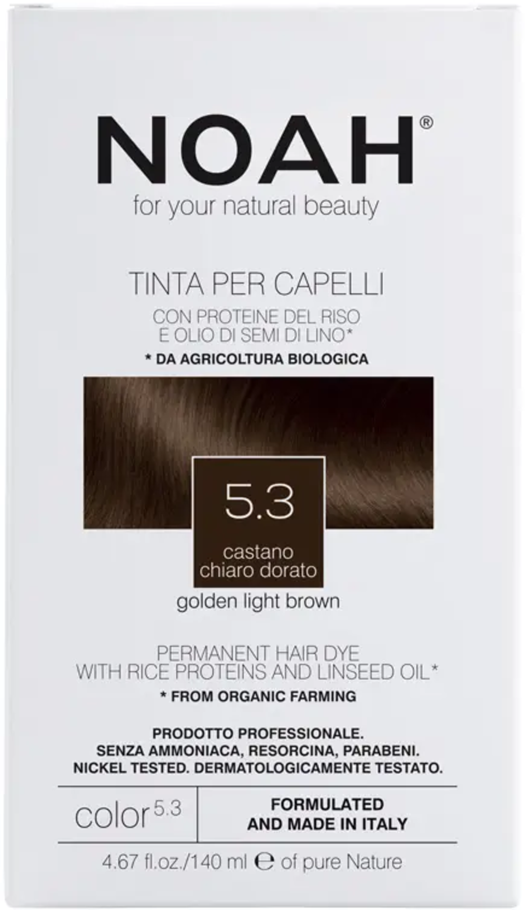 Die Permanente Haarfarbe von Noah verleiht dem Haar den gewünschten Farbton in verschiedenen Nuancen. Zudem deckt die Coloration graues Haar ab der ersten Anwendung ab, wobei die Kopfhaut und die Haarfasern bestmöglich geschont werden. Die innovative Formulierung ohne Ammoniak, Parabene oder Resorcin ist somit auch für empfindliche Haut geeignet.