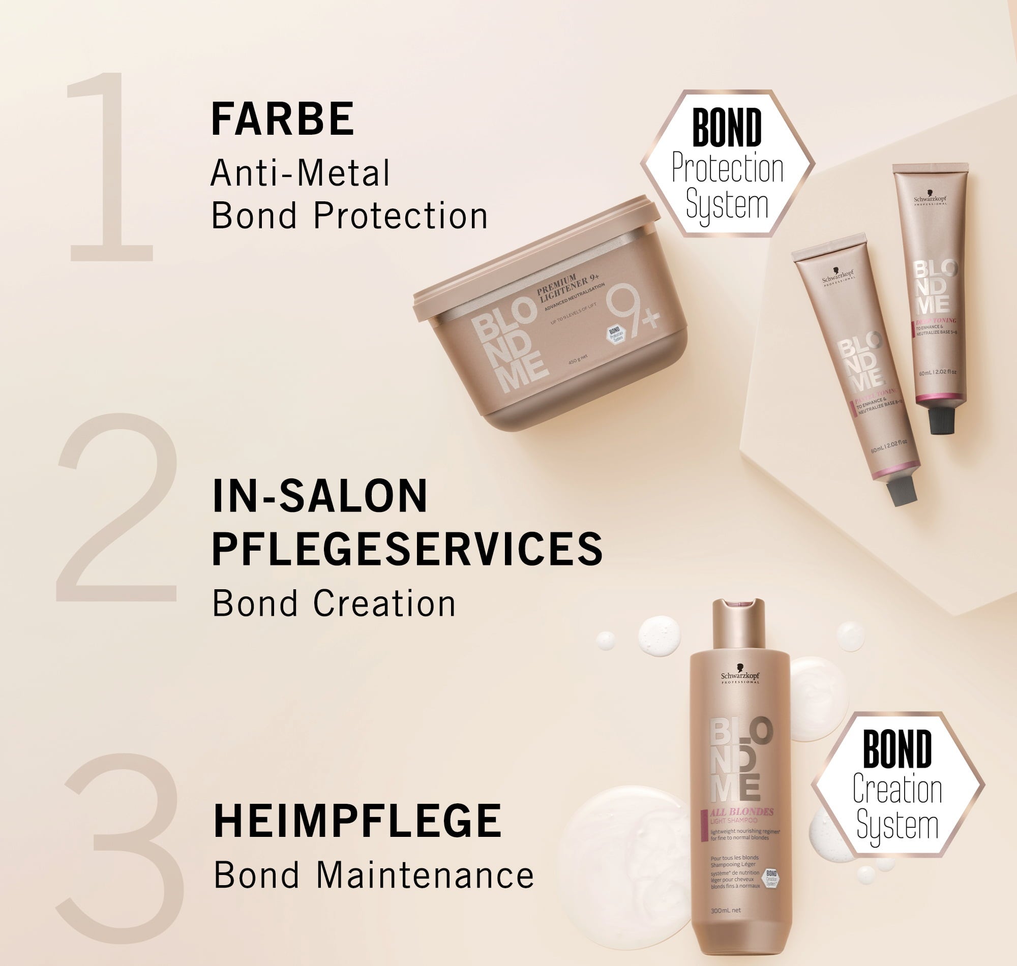 - Die integrierte Anti-Metal Bond Protection Technologie bietet den Haarfasern während der Aufhellung Schutz und sorgt für minimierten Haarbruch