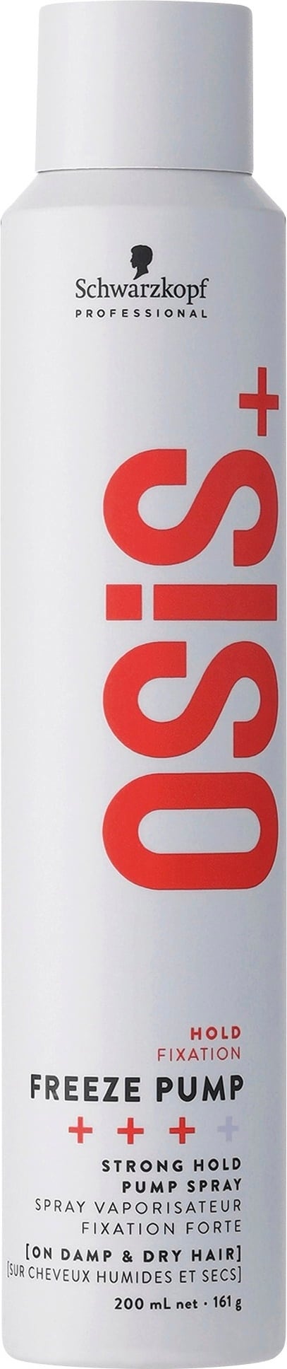 OSiS+ Freeze Pump von Schwarzkopf Professional ist ein Pumpspray, das dem Look von der ersten Minute an starken Halt verleiht. Dabei kann die Frisur noch nachmodelliert werden, bis das Produkt getrocknet ist. Zusätzlich schützt der ultrafeine Sprühnebel, der sich leicht ausbürsten lässt, vor UV-Strahlen und Luftfeuchtigkeit. Somit sorgt das feine, aerosolfreie Spray für starke Definition.