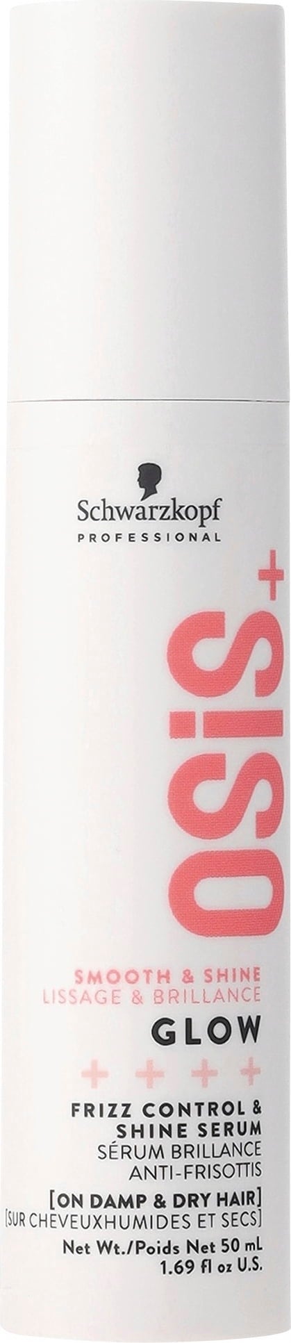 OSiS+ Glow von Schwarzkopf Professional ist ein Glanz-Serum, das raues, stumpfes Haar bekämpft, das krauses und frizziges Haar zähmt. Gleichzeitig verleiht es dem Haar einen natürlichen Glanz verleiht, ohne es zu beschweren. Das silikonfreie Anti-Frizz Serum hilft zusätzlich, fliegende Haare zu reduzieren und vor Feuchtigkeit zu schützen. Somit schenkt es bessere Kämmbarkeit und ein gepflegtes Haargefühl.
