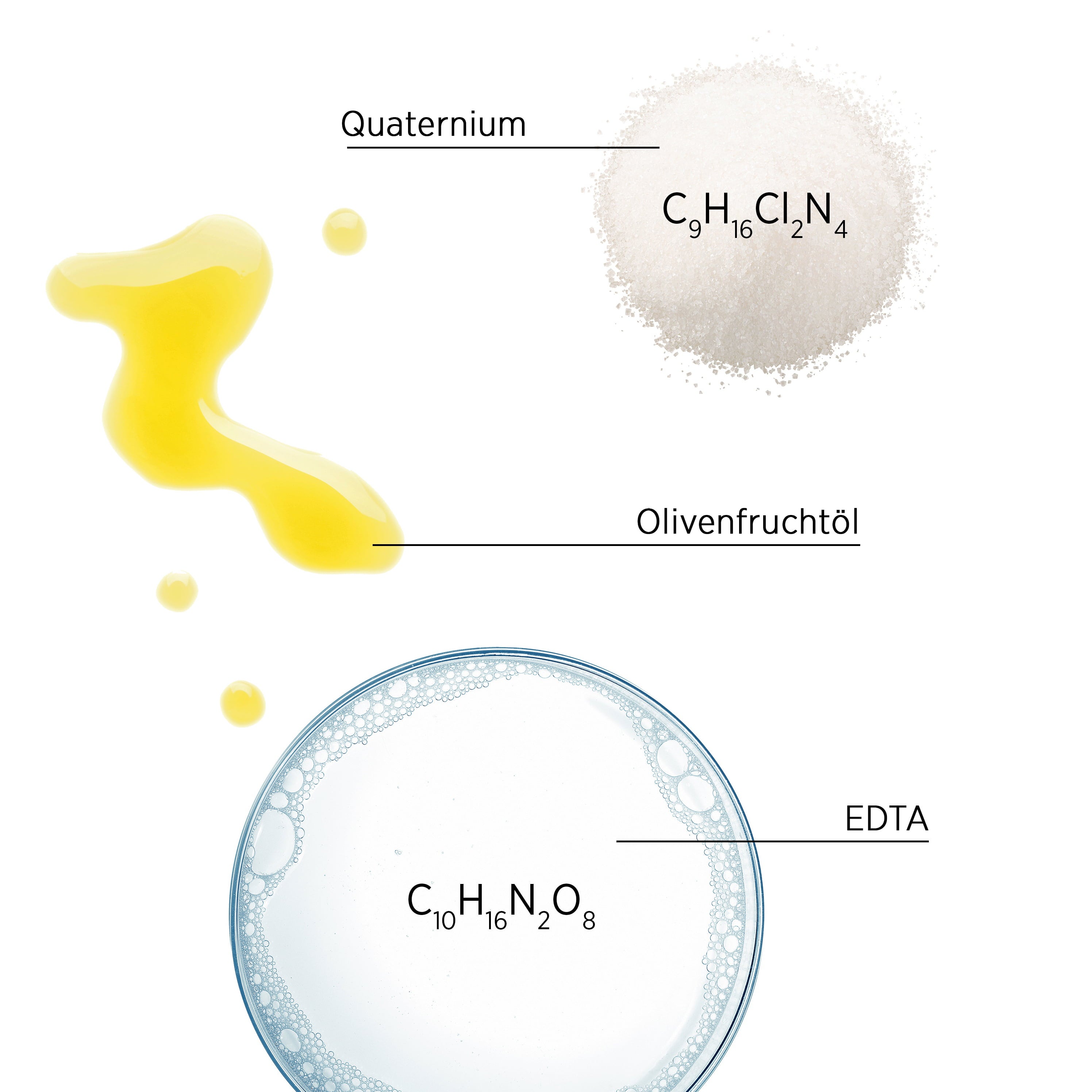 Aqua, Isododecane, Diisopropyl Adipate, Dimethicone, Polyimide-1, Phenoxyethanol, Polysorbate-20, Benzyl Alcohol, Panthenol, Parfum (Fragrance), Polyquaternium-6, Propylenglykol, Tocopheryl Acetate, Cetrimoniumchlorid, Disodium Edta, Benzyl Salicylate, Trisodium Ethylenediamine Disuccinate, Alpha-Isomethylionon, Isopropyl Alcohol, Hexyl Cinnamal, Olea Europaea (Olive) Oil Unsaponifiables, Limonene, Polyquaternium 7, Geraniol, Cumarin, Eugenol, Methylparaben, Propylparaben